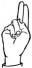 На ћирилици написано ПЕРО РАСИНАЦ састоји се из 11 слова [?]. Исписано ћириличном једноручном азбуком за глувонеме: